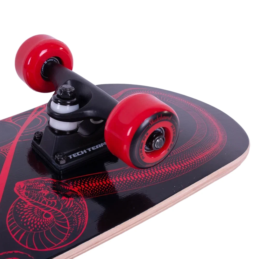 Нижняя часть скейтборда украшена замечательным принтом в красном цвете со змеей, что придает доске уникальность и бунтарский дух. Двойной концевой загиб (Double Kick) делает этот скейтборд идеальным для исполнения сложных трюков и становится незаменимым атрибутом каждого скейтера.