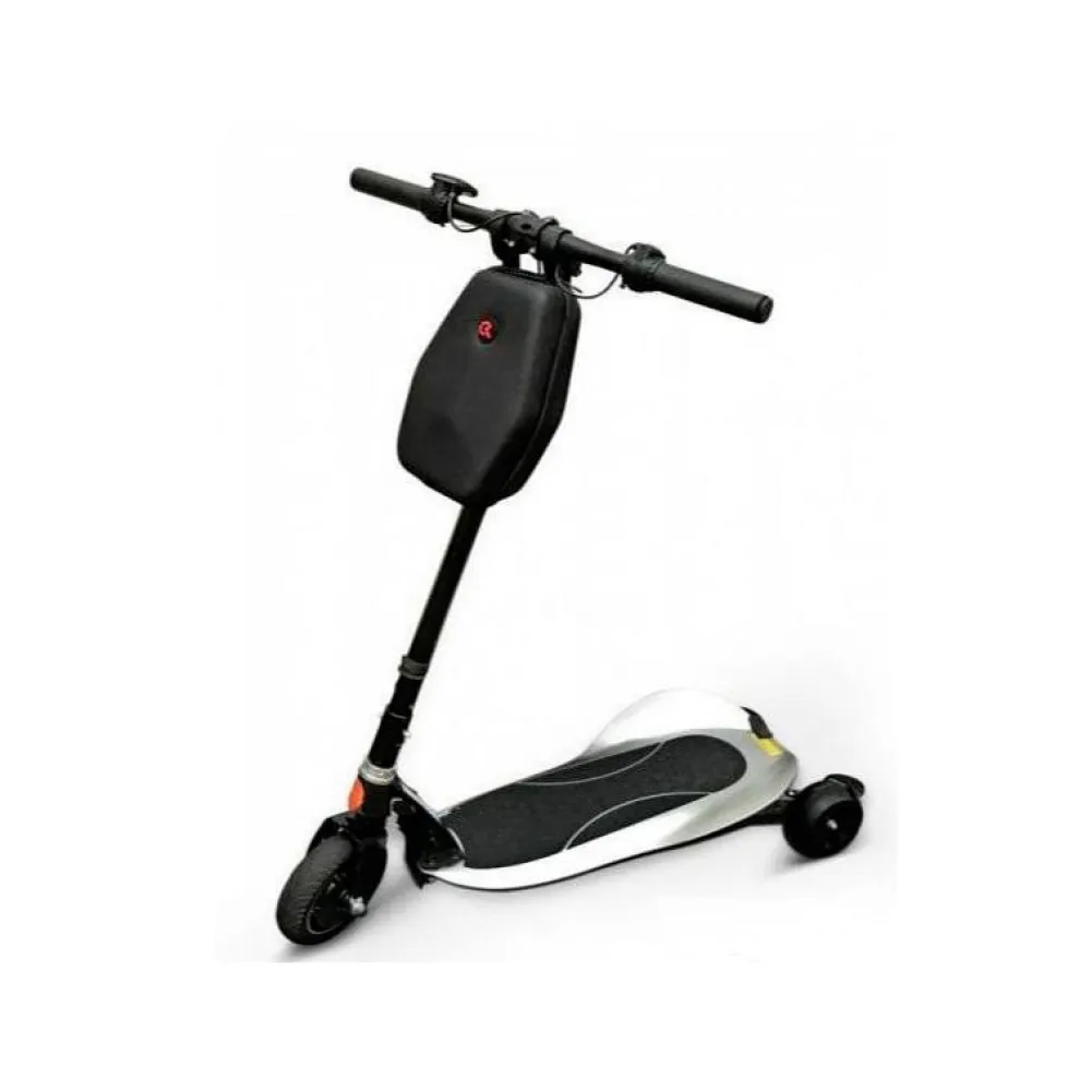 Электросамокат TRI-SKUTER - новая оригинальная модель привычного городского транспорта. 8-дюймовые колеса создают три точки опоры, позволяя даже неопытным пользователям легко сохранять равновесие во время активного движения и маневрирования. Прочная алюминиевая конструкция выдерживает нагрузку до 100 кг, позволяя передвигаться на самокате и детям, и взрослым. Электросамокат оснащен двигателем мощностью 360 Вт, который обеспечивает уверенный и плавный разгон до максимальной скорости 25 км/час. Компактный и маневренный TRI-SCUTER позволит избежать утомительного ожидания в автомобильных пробках, ведь на нем можно передвигаться по тротуарам и узким переулкам, сокращая проведенное в пути время. Кроме того, устройство легко складывается, и в случае необходимости вы можете спуститься с ним в метро или зайти в общественный транспорт. Аккумулятор полностью заряжается в течение четырех часов, после чего электросамокат способен преодолеть до 25 километров пути. Уровень заряда батареи и другие параметры движения отображаются на ярком электронном экране. Для удобства пользователей на рулевой стойке расположена вместительная сумка, которая обеспечит сохранность вещей во время поездки.