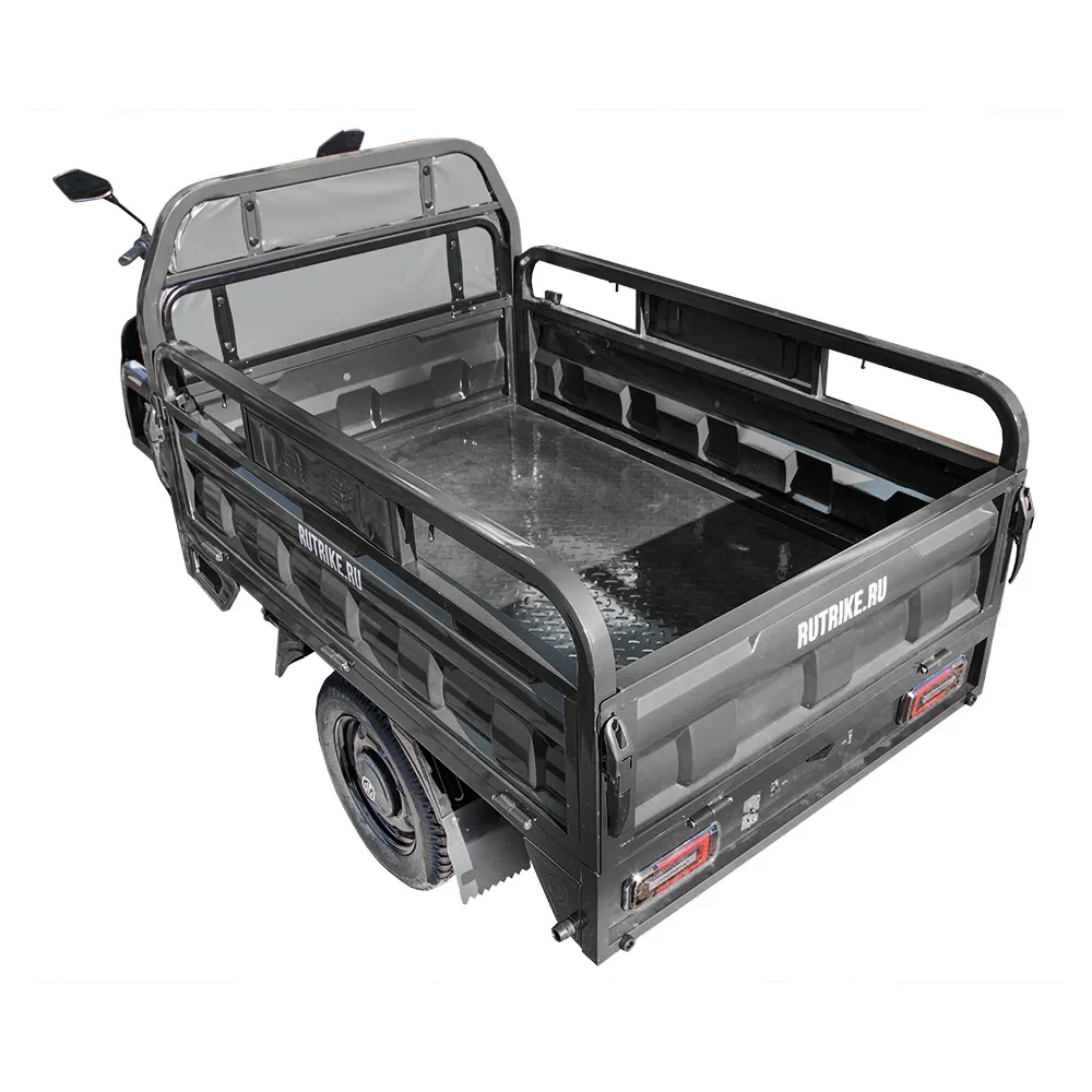 Грузовой электротрицикл Rutrike Маяк 1600 60V1000W в сером цвете - это надежное и эффективное транспортное средство для перевозки грузов. С его мощным 1000-ваттным двигателем, он способен развивать скорость до 25 км/ч, что позволяет быстро доставлять грузы на дальние расстояния.