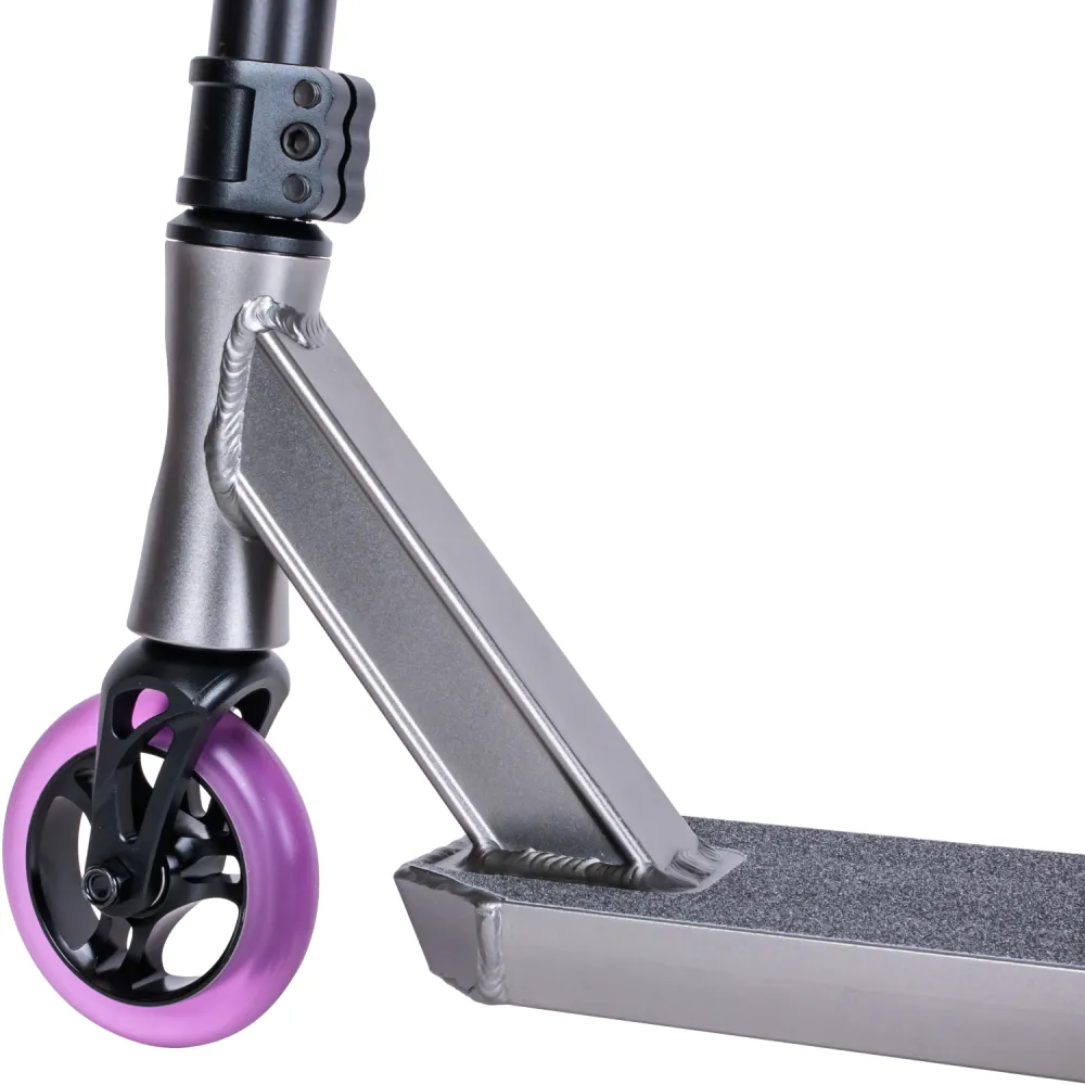 110-мм колесная часть полиуретановая, отличается высокими параметрами долговечности. Наличие алюминиевой фрезерованной вилки и фирменного заднего тормоза райдер может рассчитывать на качественный безопасный отскок.