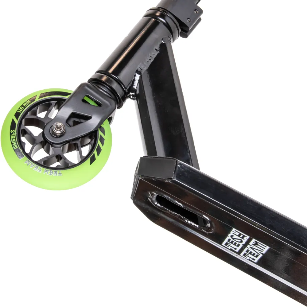 Модель трюкового самоката представлена компактными эргономичными характеристиками. При относительно небольшом весе (3,55 кг) дает возможность легко брать на прогулку и в путешествие. Широкая устойчивая платформа для ног была разработана производителем с учетом пожеланий самых требовательных райдеров. Покрытие платформы представлено нескользящей шкуркой, увеличивающей степень безопасности. Техника изготовлена из прочной стали, длительно сохраняющей свои первоначальные характеристики. Комфорт модели обеспечивается регулируемым рулем, что дает возможность передвижения без ощущения дискомфорта. Яркие светящиеся колеса делают технику узнаваемой.
