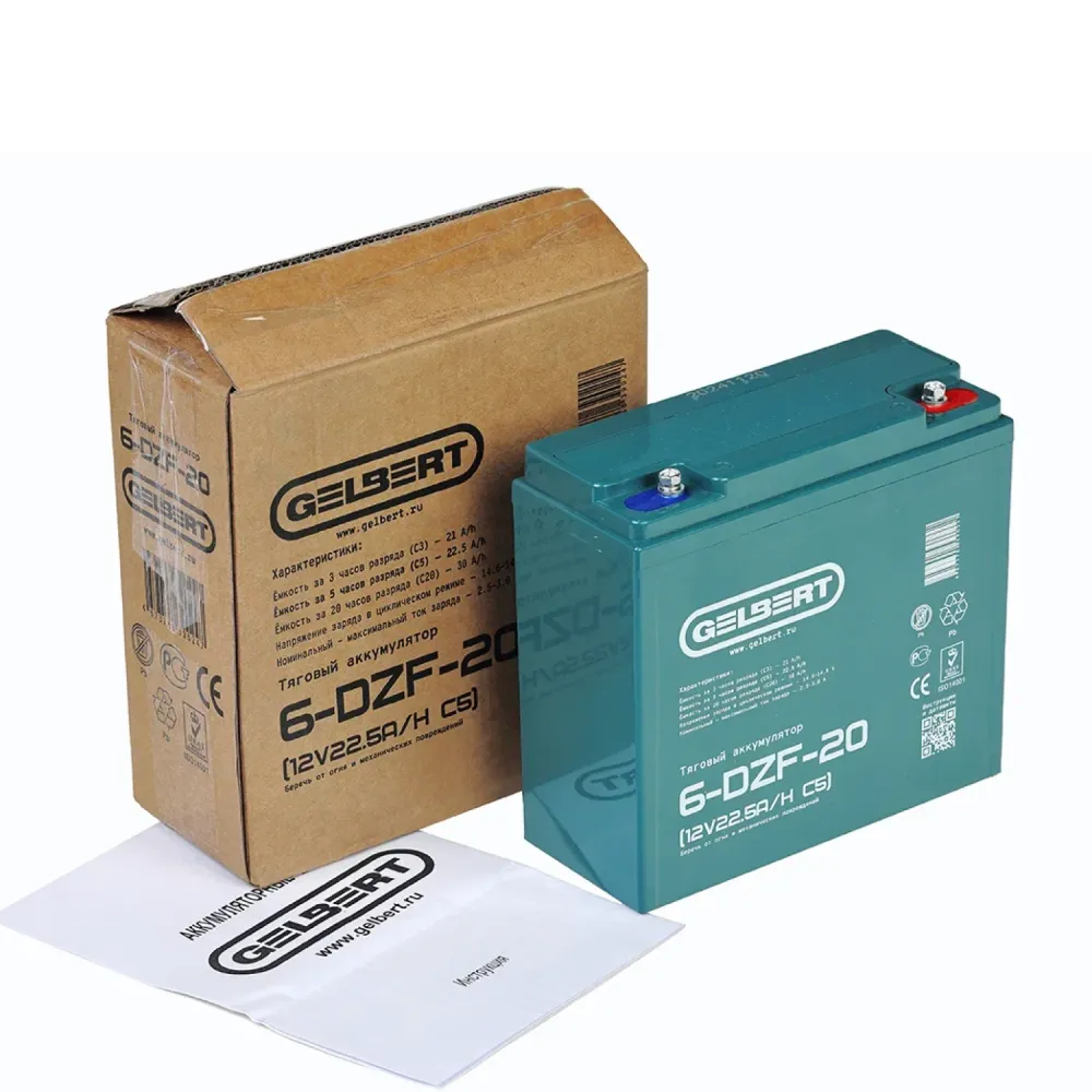 Тяговый аккумулятор Gelbert 6-DZF-20 (12V22.5A/H C5) – это современное и надежное решение для грузовых трициклов и складской техники. С напряжением 12 В и ёмкостью 22.5 А·ч по схеме С5, данный аккумулятор гарантирует длительный срок службы и стабильное питание даже при интенсивном циклическом использовании. Его компактные размеры – 180 мм в длину, 76 мм в ширину и 170 мм в высоту, а также вес 6.5 кг позволяют легко интегрировать его в конструкцию различной техники. Продукт, входящий в серию DZF, отличается высокой эффективностью, надежной конструкцией и продуманной эргономикой, что делает его оптимальным выбором для профессионалов, ценящих качество и долговечность. Gelbert 6-DZF-20 успешно справляется с задачами по тяговому питанию, обеспечивая бесперебойную работу оборудования в самых суровых условиях эксплуатации, будь то транспортировка грузов или работа в условиях склада. Благодаря инновационным технологиям производства и строгому контролю качества, этот аккумулятор заслуживает доверия и является надежной опорой для любой техники, требующей стабильного и мощного источника энергии.
