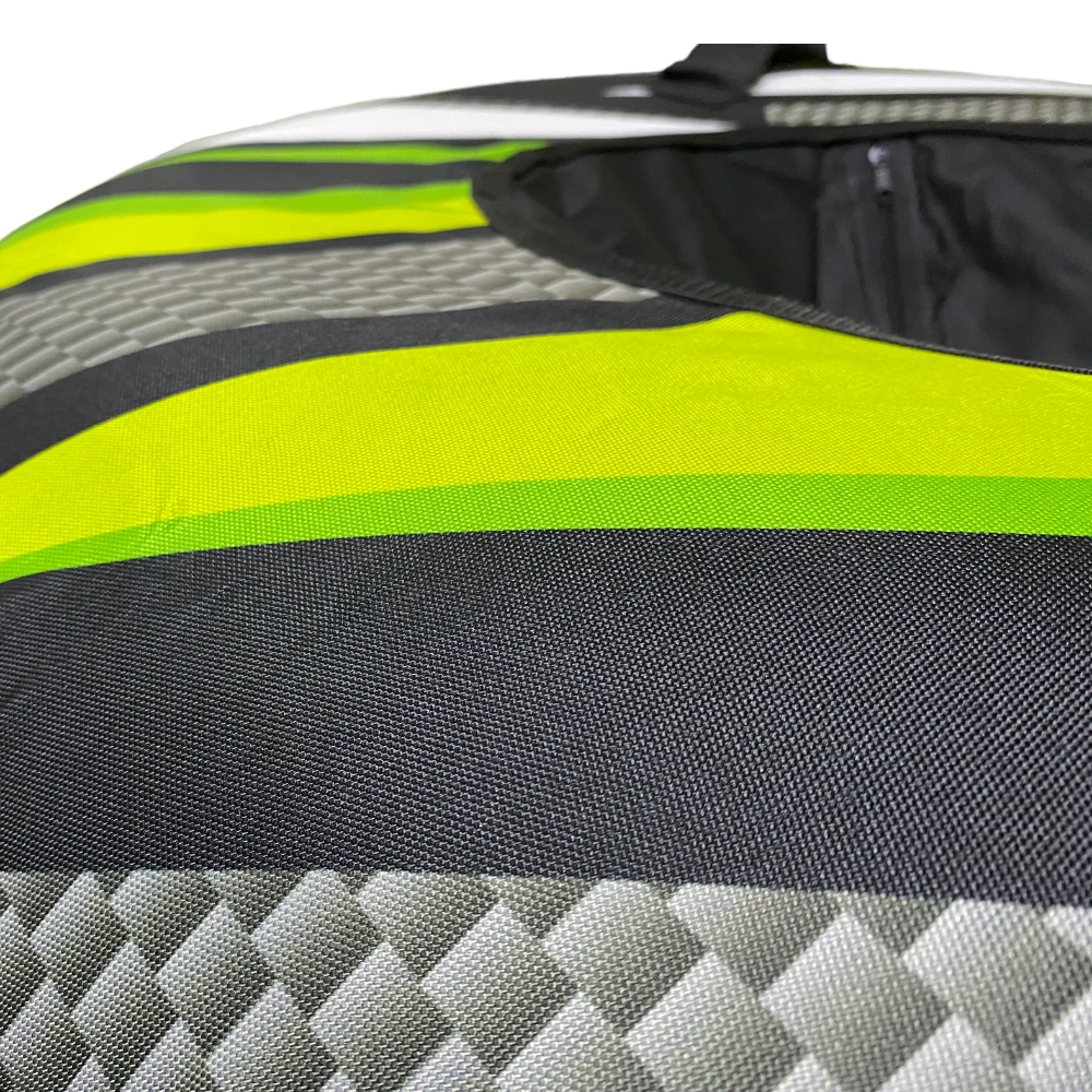 Тюбинг Карбон 120см - это уникальное и оригинальное средство для активного отдыха на воде. Он представляет собой надувное кольцо с диаметром 120 см, выполненное в стильном дизайне, напоминающем карбоновое волокно. Принт на данном тюбинге сочетает зеленые и белые элементы, что придает ему особую эстетику и привлекательность.